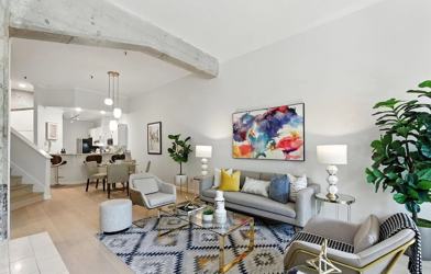 Rarely available condo in central, vibrant NOPA neighborhood near the Panhandle and Golden Gate Park. Exceptional architectural design with exposed concrete columns, soaring ceilings, and open concept layout. 1 bedroom plus den with 2 baths, 2 huge parking spots, tons of storage, fireplace, private terrace, in-unit laundry. Lots of southern-exposure light from big windows. Spacious living room features a cozy wood-burning fireplace, perfect for relaxation or entertaining. The updated kitchen has ample cabinetry and breakfast bar, The spacious bedroom includes a walk-in closet. Both the living room and bedroom have sliding doors that open to the terrace, perfect for morning coffee. Additional den/office and large storage area in the unit. Loft-like feel. Peaceful ambiance. Warm, inviting feeling throughout. Boutique, 13-unit building in what was formerly a taxi-cab garage in the 1920's. Beautiful flooring throughout and freshly painted. 2-car side by side parking (rare!), and additional dedicated storage in garage. Great neighborhood near park & transportation. Walk to coffee. Haight-Ashbury, Cole Valley, Laurel Village and Divisadero Street, the Koret Center and USF are all close by.
