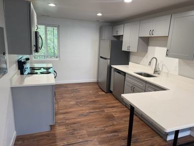 This apartment has new paint, new flooring, quartz counter tops, stainless appliances, and includes a washer/dryer in the unit!
