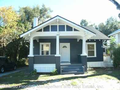 Remodeled home near Downtown Deland - 2 bedrooms, 1.5 baths. Cozy historic charm mixed with modern conveniences. Hardwood floors, faux fireplace. formal dining room with built-in cabinets and window seat with storage. 1/2 bath downstairs, full bath with tub/shower upstairs.