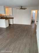 • Laminate flooring in living room, dining room, kitchen, hallway, and bedroom.