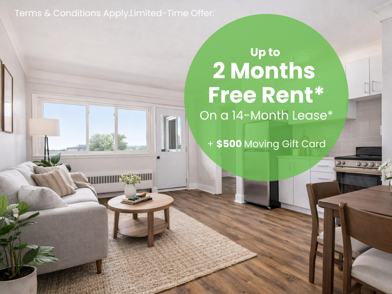 Up to 2 months free* on a 14-month lease + $500 moving gift card