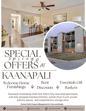 Kaanapali Apartments now has availability for its oversized one-bedroom homes located directly across from Hyde Park. These fully updated apartments feature a stylish mix of natural hardwood flooring, ceramic plank tile in the kitchen and bathroom, and plush carpet in the exceptionally spacious bedroom.