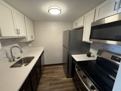 Step into comfort and style with this beautifully renovated first-floor apartment, ideally located just minutes from scenic golf courses. Inside, you'll find brand-new luxury vinyl plank flooring throughout, combining long-lasting durability with a sleek, modern look. The kitchen is a standout feature, offering stainless steel appliances, quartz countertops, and updated cabinetry—perfect for cooking at home or entertaining guests.