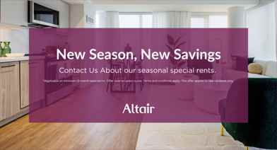 Rent Special available! New Season, New Savings Contact Us About our seasonal special rents. *Applicable on minimum 15-month lease terms. Offer valid on select suites. Terms and conditions apply. This offer applies to new residents only.