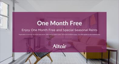 Offering a variety of amenities including a seasonal pool, party room, laundry facilities, playground, and plenty of parking. Altair has what you need. With attentive 24-hour security, on-site management, and a friendly sense of community, we want you to call Altair home.