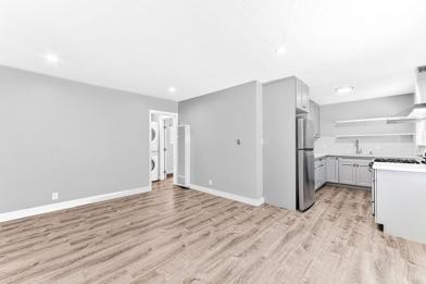 Inside, you’ll find a thoughtfully remodeled kitchen complete with stainless steel appliances including a refrigerator, stove, and dishwasher, creating a clean and contemporary space that feels both functional and stylish. Vinyl flooring runs throughout the apartment, while large windows bring in great natural light and add to the open, airy feel. The custom bathroom adds a polished touch, and the convenience of in-unit laundry makes daily living even easier.