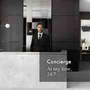 Encore's elegantly furnished lobby features imported Italian marble desk, bespoke custom stylish seating area with fireplace overlooking the classic Manhattan inspired exterior entrance, which makes for a distinguished arrival.