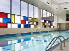 Residents enjoy a wide range of amenities, including a fitness center, indoor pool, hot tub, sauna, steam room, rooftop deck with hot tub and fire pit, entertainment lounge, clubhouse, and a two‑lane bowling alley. Landscaped rooftop and outdoor spaces provide serene retreats amidst the bustling city.