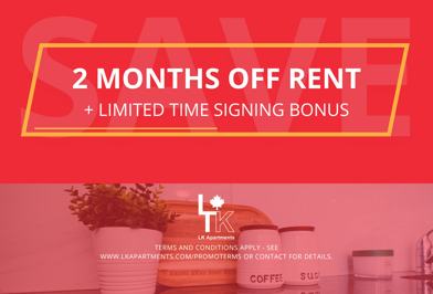 Now offering 2 months off your rent plus a signing bonus! Terms and conditions apply Contact us for details and availability.