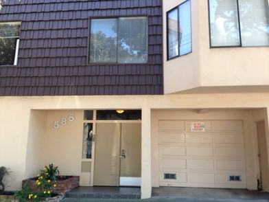 This remodeled 2 bedroom unit has laminate flooring, stainless steel appliances, granite counter tops & newer cabinets in both kitchen & bath, new lighting fixtures, new vinyl windows & blinds throughout. Extra closet space & garage parking for a 1 small car is included. The southern exposure has a great view of the San Bruno Mountains and the south bay, the unit gets great afternoon light. There is an intercom at the front door.