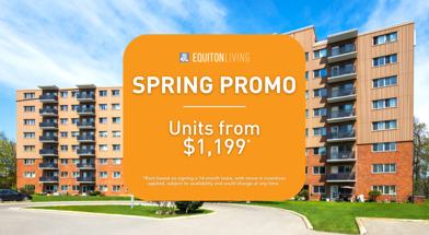 Rent Special available! SPRING PROMO | Limited Suites Available! Units starting at $1,199.* *Rent based on signing a 14-month lease, with move in incentives applied, subject to availability and could change at any time.