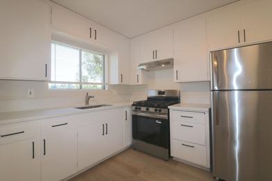 2nd floor 2bed/ 1bath (1050 sqft) apt in La Mesa/ Lake Murray! Newly installed light colored vinyl flooring throughout unit! AC, parking, laundry on site! Stainless steel appliances include refrigerator and gas stove. White colored quartz countertops in kitchen. Updated light fixtures and ceiling fans in bedrooms. Over 1,000 sq feet, 2 off street parking spaces, beautifully landscaped yard, private balcony, and on site laundry! Walk to Starbucks on the corner. Owner pays for water, sewer, and trash. Tenants pay for cable/ internet and gas/ electric.