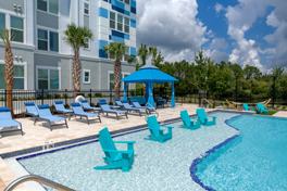 Ciel Luxury Apartments 4929 Skyway Dr, Jacksonville, FL is a rental apartment building with 9 floorplans available. It is located in the Windy Hill neighborhood of Jacksonville. It has apartment amenities including in-unit laundry, ceiling fan, walk-in closets, high ceilings, and microwave. It has building amenities including package service, ev charging, elevator, garage parking, business center, residents lounge, controlled access, storage, fitness center, and swimming pool. Cats and dogs are allowed, making it a pet-friendly building.