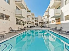 Welcome to this light-filled, stylish 1 bed, 1 bath condo in the heart of West Hollywood! Spacious living area, and a separate dining space, this home offers the perfect blend of comfort and modern living. Step out onto your private balcony, a cozy retreat for your morning coffee or evening unwind. The updated kitchen boasts sleek counters, a modern backsplash, and ample cabinet space. The bathroom features a shower/tub combo, while the large bedroom includes custom blinds for privacy and ambiance. A low HOA that covers access to a pool, gym, and stunning rooftop deck with breathtaking city views, as well as basic cable and internet. Plus, one private parking space and extra storage are included! With its prime location, stylish updates, and unbeatable amenities, this West Hollywood gem won't last long.