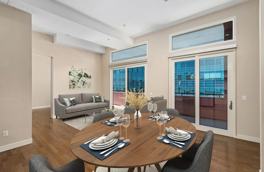 Views! Views! Views! Experience urban living at its finest in this TOP FLOOR PENTHOUSE unit. Its prime location provides expansive, captivating views and picturesque cityscapes from nearly every angle. This penthouse unit boasting an open floor plan, soaring 12 ft ceilings. An urban twist on the classic barn door elegantly separates interior rooms, extending from floor to ceiling, The generously sized kitchen and living area provide ample room for relaxation and entertainment. Situated within the prestigious VERO building lavishes a pool/spa, fitness center, sauna, yoga studio, clubhouse, concierge, amenity deck with luxury lounge seating, barbecues and fire tables, business center/library and 24-hour security patrol. Gated 2 car parking spaces included. Wash and Dryer are in unit. Water, hot water, sewer and trash services all included. This unit is virtually staged.