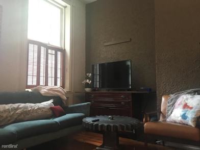 Beautiful one bedroom apartment with high ceilings, tall windows and original hardwood throughout. Open floorplan living room and dining room, with lofted storage space. Rear hallway leads to full tile bath with large cedar closet for clothes. Spacious rear bedroom set against the backyard garden.