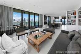 Panoramic views of Biscayne Bay and the Miami skyline from this completely renovated 3 bedroom (plus den) 2 bath, corner unit with over 1,700 sq/ft of U-shaped terrace. This unique floor plan has south, west & north exposures and allows all 3 bedrooms direct access to the oversized terrace. Perfectly blended interior and exterior spaces create a dramatic home perfect for entertaining. This stunning apartment includes an open kitchen with oversized chef's island, Sub-Zero & Miele appliances, whole home automation, electric shades, custom closets, designer baths & 3 assigned parking spaces. Surrounded by over 9 foot tall walls of impact glass opening to the most spectacular views in town. This is one of a kind!
