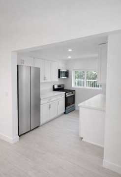 Section 8 Approved - This beautifully renovated studio / 1 bathroom apartment offers modern living with brand-new upgrades throughout. From the moment you enter, the clean lines, recessed lighting, and new flooring create a bright and welcoming atmosphere. The kitchen has been completely redesigned with white quartz countertops, custom cabinetry, a stylish tile backsplash, and brand-new stainless steel appliances — blending function and modern design seamlessly. The open layout makes the space feel airy while still providing separation between living and sleeping areas. The studio offers great natural light and a comfortable retreat, while the fully remodeled bathroom features a quartz vanity and contemporary tile shower, giving it a polished, spa-like feel. New dual-pane windows enhance comfort and efficiency, and the unit has been thoughtfully updated so everything feels fresh and move-in ready. For convenience, water, gas, and trash are paid by the owner, while electricity is tenant responsibility — making budgeting simple. Appliances are included in many units; however, appliances may vary depending on the specific unit. Unit layouts vary depending on size and configuration, but the materials and finishes remain consistent throughout the property.