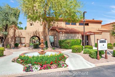 Spacious, 2 Bedroom 2 Bath Scottsdale Condo located in Belcara Community for Lease. - Don't miss out on this upper level condo that has what you're looking for! This 2 bed, 2 bath beauty comes with tons of designer touches. Features include: Crown molding, private balcony, window coverings, low-E windows and sliding door, newer laminate flooring in the main living areas except bedrooms, kitchen and bathrooms have tile, stacked washer and dryer, upgraded granite counter tops in kitchen, stainless steel appliances, side by side fridge with automatic ice maker and water dispenser, light cherry hardwood cabinetry. Master has en suite bath, tiled walk in shower and spacious walk in closet. This home has pool and courtyard views. The Belcara Community is a very well maintained complex that has two pools, a fitness center and a nice club house accessed with a key fob. Great location in the middle of Scottsdale with easy access to freeways, shopping, entertainment and the walking paths of McCormick Ranch.