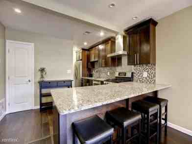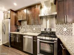 Rich, chocolate hardwood floors throughout. Gorgeous kitchen features ceiling height dark wood cabinetry with sleek chrome pulls, granite countertops, breakfast bar, stainless appliances counter depth fridge and full-size stackable W/D remain. Opens to dining & family room with fireplace. View to private deck. Enclosed sunroom, perfect for office or exercise room. Spacious master bedroom with walk-in closet, high-end bathroom with quartz vanity & glass enclosed shower. Two additional bedrooms share high-end bathroom with dual vanity. Daylight terrace level with fireplace and built-in desks in closet space. Fully fenced, covered, courtyard. Amazing location!