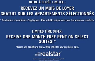 Rent Special available! RECEVEZ UN MOIS DE LOYER GRATUIT SUR LES APPARTEMENTS SÉLECTIONNÉS !*