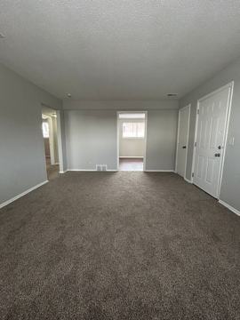 As you enter the apartment, you are welcomed by a large living area with soft carpeting and oversized windows that fill the space with natural light. The open layout provides plenty of room to create a comfortable living and dining setup, making it perfect for relaxing or entertaining guests.