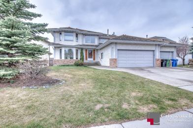 Beautiful family home on the quiet west side of Woodbine backing onto green belt with mountain view and a short walk to Fish Creek Park: