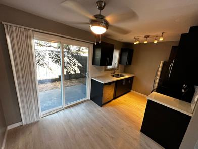 Enjoy neutral paint coloring in the living room and warm laminate flooring throughout the apartment. As you enter the living room the floor plan is open to the kitchen and eating area.