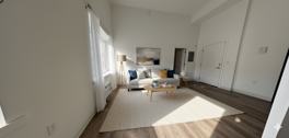 This studio apartment in Philadelphia offers a thoughtfully designed living space that maximizes efficiency and comfort. The unit boasts an open floor plan, creating a seamless flow between living areas. Large windows flood the space with natural light, enhancing the sense of spaciousness and providing views of the surrounding urban landscape.
