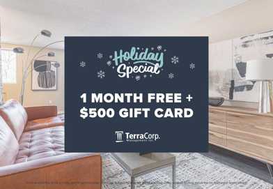 Rent Special available! Holiday Special: 1 Month Free + $500 Gift Card 1 month free on a 13 month lease + $500 gift card when you sign a lease by January 1, 2026. On select suites only.