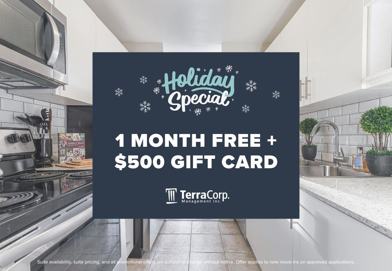 Rent Special available! Holiday Special: 1 Month Free + $500 Gift Card 1 month free on a 13 month lease + $500 gift card when you sign a lease by January 1, 2026. On select suites only.