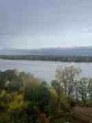 Water front building surrounded by scenic greenery.