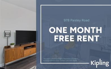 Receive 1 Month Free Rent!*Welcome to 978 Paisley Rd, a charming low-rise building within the Paisley Square rental community in Guelph's vibrant west end. Enjoy spacious, open-concept suites featuring in-suite laundry, modern kitchens with stainless steel appliances, and private balconies in select units. Perfectly located near Costco, Zehrs, and the West End Community Centre, 978 Paisley Rd offers easy access to everyday essentials, public transit, and major routes. With on-site parking, secure building access, and professional management, residents experience convenient, comfortable living in one of Guelph's most desirable neighbourhoods.*Promotions are subject to change without notice. Contact us for more details. Offer for new residents only