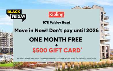 Welcome to 978 Paisley Rd, a charming low-rise building within the Paisley Square rental community in Guelph's vibrant west end. Enjoy spacious, open-concept suites featuring in-suite laundry, modern kitchens with stainless steel appliances, and private balconies in select units. Perfectly located near Costco, Zehrs, and the West End Community Centre, 978 Paisley Rd offers easy access to everyday essentials, public transit, and major routes. With on-site parking, secure building access, and professional management, residents experience convenient, comfortable living in one of Guelph's most desirable neighbourhoods.