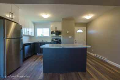 - Open concept kitchen with 4 appliances including fridge, stove, dishwasher and microwave