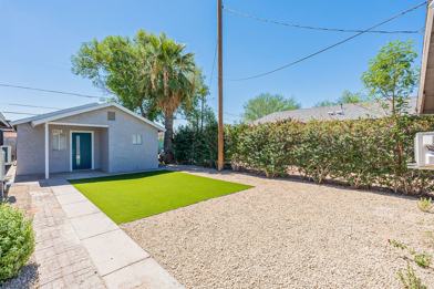400 SF pet friendly studio has been completely renovated and updated. Kitchen has plenty of new cabinets and granite counter tops. There's room for a table and chairs. Living area is generous and open so it will accommodate your furniture. Bath is completely new and has a shower. This studio is in a separate building at rear of this 4 unit property. Washer/dryer included.