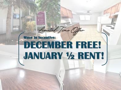 MOVE IN INCENTIVE : DECEMBER FREE AND PAY JANUARY 1/2 RENT!
