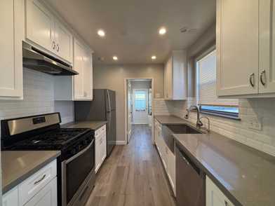 - Updated kitchen featuring white shaker cabinets, ample counter space, stainless steel appliances, and recessed lighting.