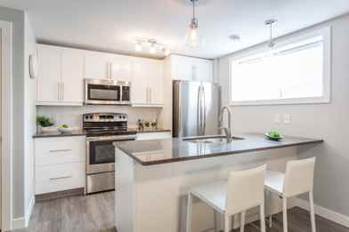 The James Hill Road homes and suites are pet-friendly single-family homes, basement and laneway suites available for rent in the Harbour Landing neighbourhood of south Regina. The homes and suites are fully equipped with central heat, air conditioning, full-size stainless-steel appliances (including dishwasher and microwave), in-suite laundry and modern finishes such as white cabinetry and laminate flooring. The suite configurations are as follows: The single-family homes with an unfinished basement include a private fenced-in backyard. The single-family homes with basement suite below include a shared fenced-in backyard. The single-family homes with an unfinished basement and laneway suite have access to a shared two-car garage.* Same-day application approvals are available.* Rates are based on a one-year lease and may vary by floor/layout.* Reduced security deposit for seniors.* Pet restrictions apply.