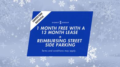 Rent Special available! Limited Time Offer: Get 1 Month Free with a 13 Month Lease + Reimbursement for Street Side Parking! *Offer valid on select suites. Additional terms and conditions may apply.