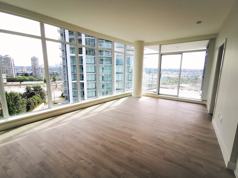Bedroom with floor to ceiling windows and southwest panoramic view of the Burnaby skyline