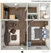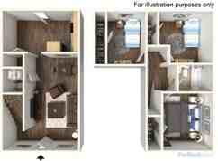The Uptown is perfect size for couples, room mates and small families. Both bedrooms are fully carpeted and have spacious closets. The living area is sized just right for move night. The kitchen is equipped with black appliances and small eat in area.