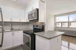 2181 Avenue Road offers fully renovated, spacious suites that include open-concept kitchens featuring chrome accents, a breakfast bar, laminate countertops, a new overmount sink, and a tiled backsplash. Additionally, stainless-steel refrigerators, stoves, and microwaves are included in all units. Dishwashers are available in select units.