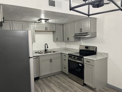 Be the first to enjoy this fully renovated 2 Bedroom End unit Apartment on a great Rio Rancho Cul-de-Sac. Open kitchen / dining area with new stainless appliances (including a dishwasher). Totally renovated kitchen and full bathroom with new fixtures and finishes throughout. New kitchen includes new counters and shaker cabinets. Renovated bathroom features a new shower surround w/ a new vanity and fixtures. You'll also love the new luxury vinyl plank and fresh paint throughout, along with the large backyard and patio space with sliding door access off the master bedroom.