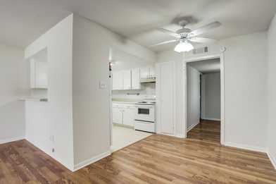 Laminate wood floors, large kitchen, ceiling fans, onsite laundry and off street parking.
