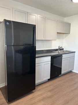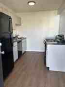 Experience luxury in this oversized, sun-filled 1-bedroom home. This professionally remodeled apartment features a modern kitchen equipped with brand-new Lanston Grey cabinetry, striking black countertops, black appliances, and warm wood-plank flooring.