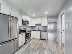 * Remodeled gourmet kitchen with luxury quartz countertops and brand new top of the line stainless steel appliances (dishwasher, bottom freezer refrigerator, electric range and microwave oven)