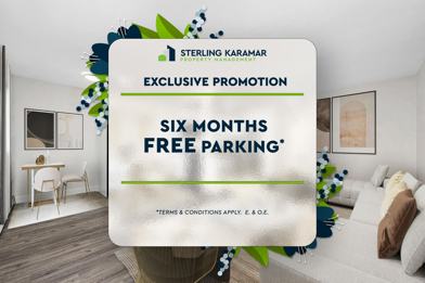Rent Special available! Limited Time Offer | Enjoy 6 Months FREE Parking!* Limited Time Offer | Enjoy 6 Months FREE Parking! *Terms & Conditions Apply.