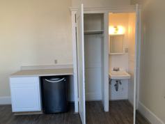 PRIVATE ROOM, PRIVATE ENTRY:EXCELLENT CONDITION. This is a SRO (Single Room Occupant).Very nice room approximately 200+-sq.ft., nicely painted with newer engineered wood & vinyl floors, views, natural light, high ceilings, light fixture, window coverings, refrigerator w/counter-top, & microwave oven. Sink with mirror/medicine cabinet & close space. Bathroom w/tub & shower in common hallway. Plus flat fee for utility charge. Laundry across the street. Good size room for bed, bookcase, dresser, desk/chair, computer/TV. NO PETS. On-Site Mgr. 9-12 month lease.