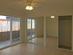 Sliding door from bedroom leads to outside patio area. Both bedrooms have wood look and feel floor, new windows, ceiling fans. Wall to wall closets and brand new sliding mirror doors.